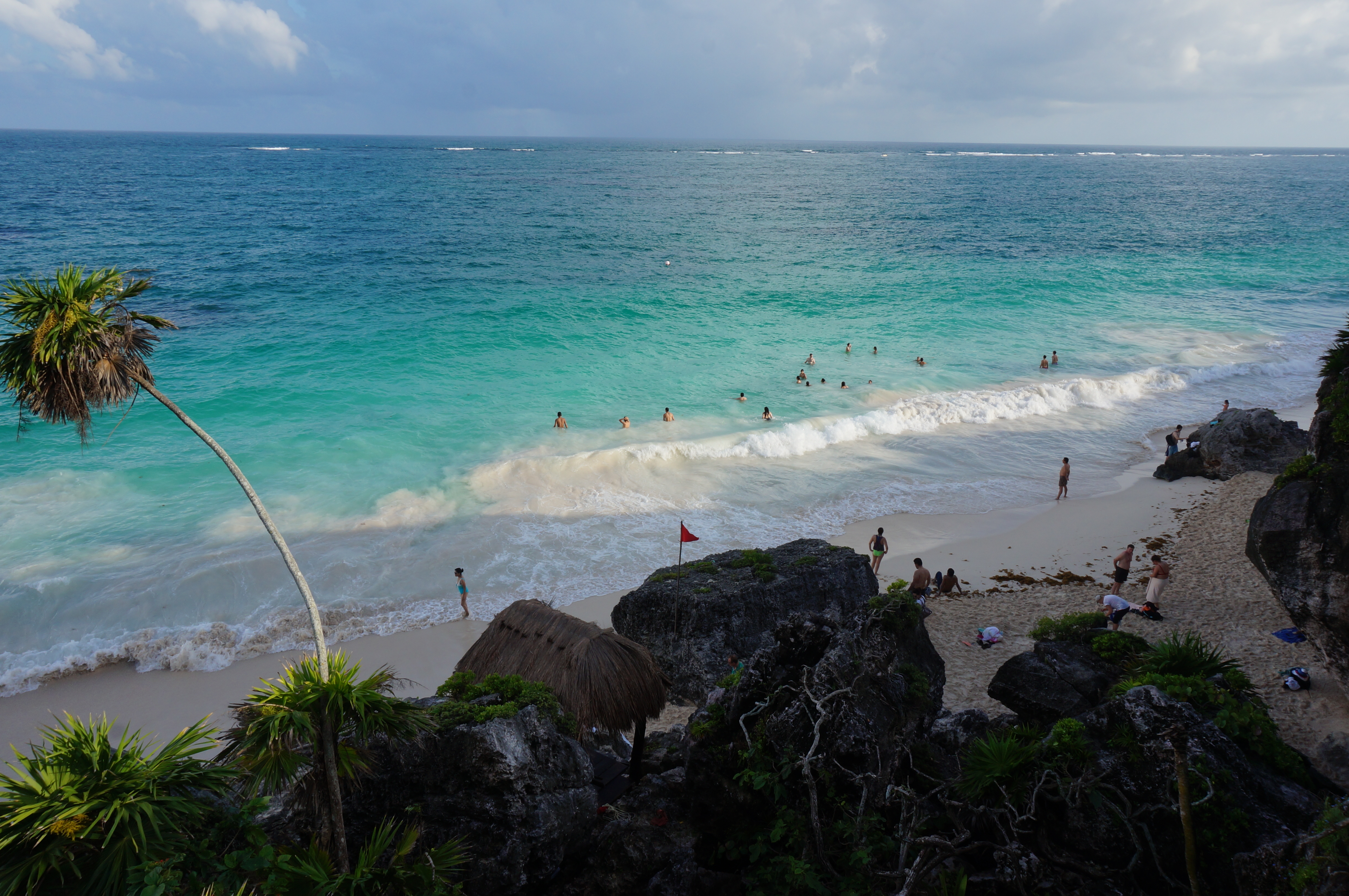 호스텔에서 툴룸 마야유적지까지 거리는 약 2km. 걸어갈까 잠시 망설이고 있는데, 선글라스 낀 운전기사 아저씨와 눈이 마주치자마자 거부할 수 없는 택시의 유혹에 빠져듭니다. 편히 차를 타고 갔는데도 더위를 먹었는지, 혹은 페리에서의 배멀미 여파가 남았는지, 머리가 핑글핑글 돌고 입안이 마릅니다. 비싼 택시비와 입장료를 지불했으니 열심히 판넬도 읽고 사진도 찍어야지 머리로는 생각하는데, 오랜 세월과 바닷바람을 견뎌낸 고대인들의 웅장한 건축물이 한낱 돌무더기로만 보입니다. 잠시 숨을 고르려 유적을 뒤로 하고 해변으로 향했습니다. 파도타는 사람들을 구경하며 바닷바람을 받으니 정신이 좀 드는가 싶더니, 갑자기 하늘이 어두컴컴해지고 빗방울이 떨어집니다. 잎사귀가 빽빽한 나무 아래 비를 피해보지만 굵어지는 빗줄기를 막기에는 역부족이네요. 결국 홀딱 젖어서 호스텔에 터덜터덜 돌아왔습니다. 지금 있는 호스텔의 유일한 장점인 빠른 wi-fi를 이용해 내일 옮길 숙소를 맹렬히 검색했습니다. 근처에 cenote라고 하는 지하동굴 지형이 볼만할 것 같기는 한데, 괜히 툴룸에 하루 더 묵기 싫어져 칸쿤으로 이사할 계획을 세웠습니다. 툴룸은 루트상 한번 더 지나갈 가능성이 있으니 일단 후퇴합니다.